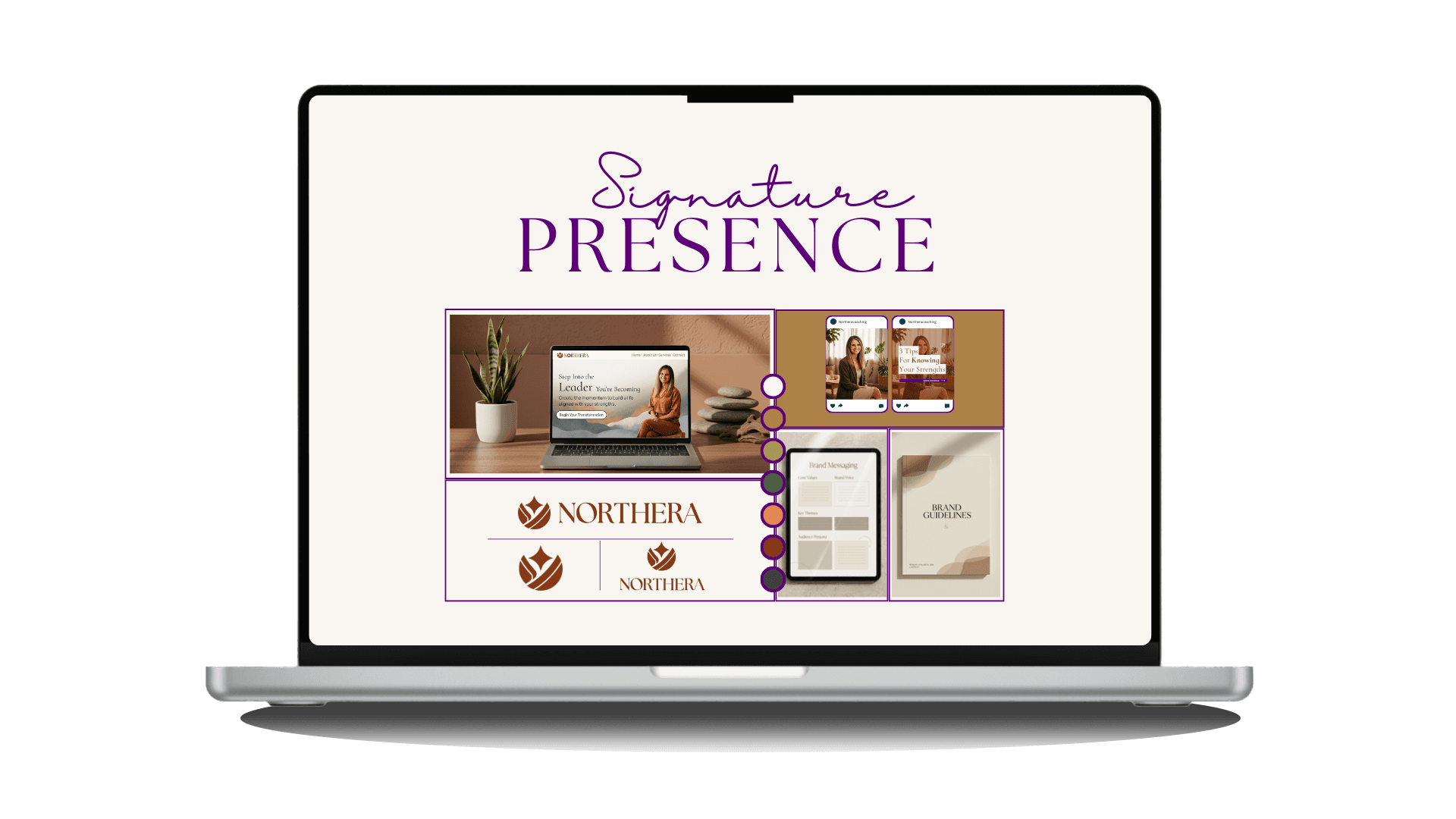 Signature Presence is a complete brand and website experience for purposeful coaches and online service providers who’ve outgrown DIY branding and are ready for a presence that feels cohesive, credible, and unmistakably them.
