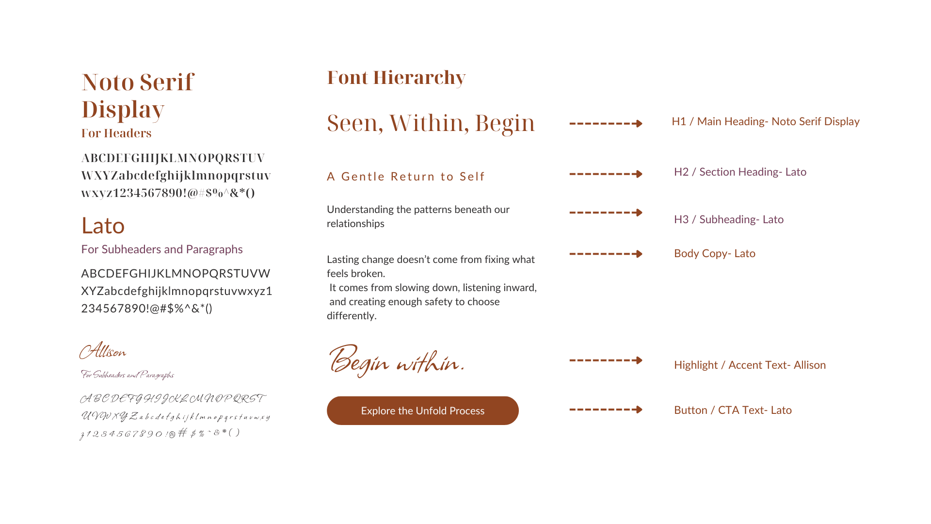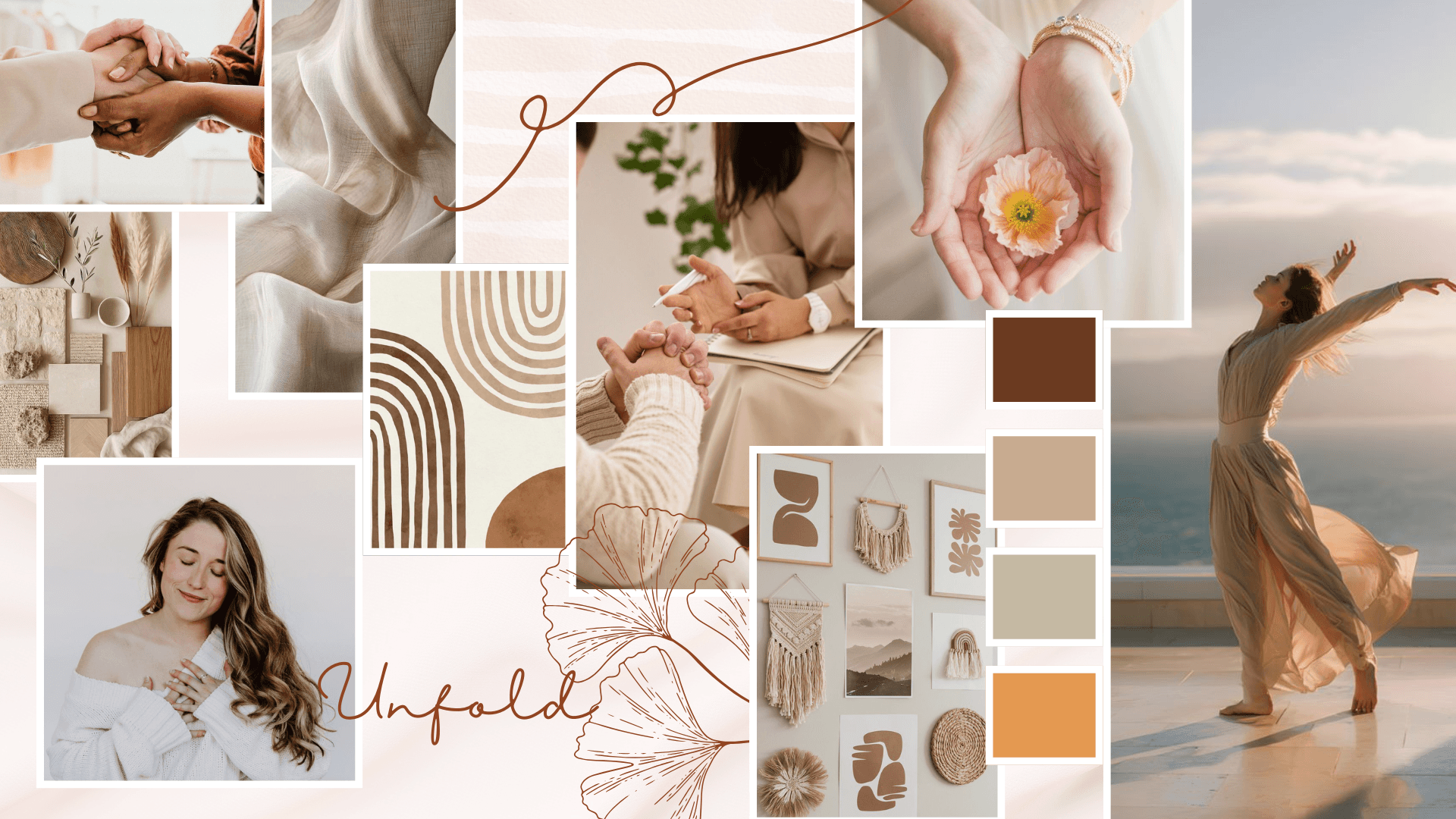 The goal of branding Unfold was to visually and emotionally communicate depth, safety, and grounded femininity.